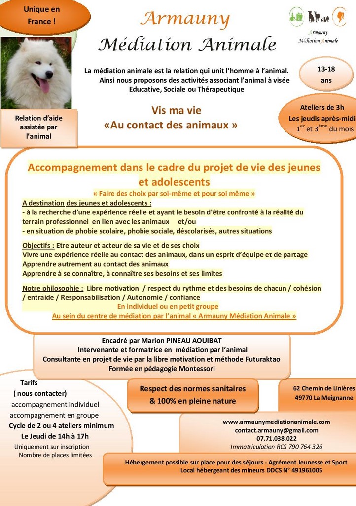- Avril 2024 : Ateliers et stages : médiation canine et soigneur animalier