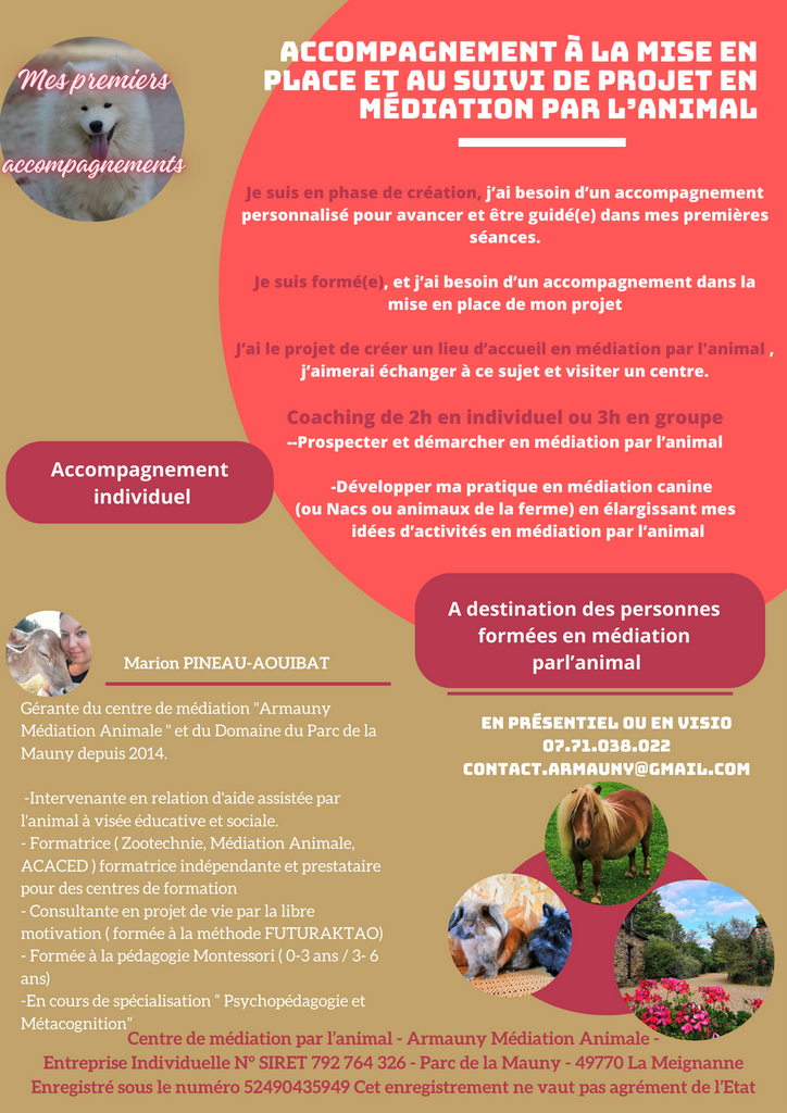 Formatrice diplômée "Moniteur de formation alternée" en 2012"Management de projets en médiation par l'animal"