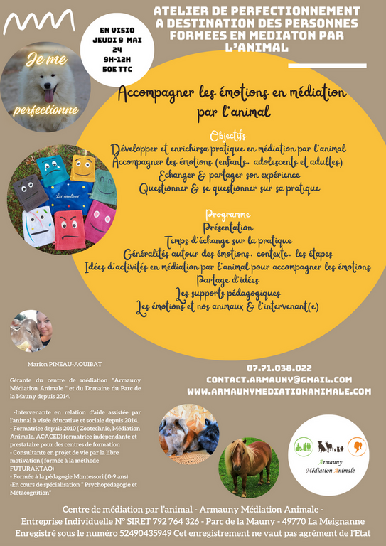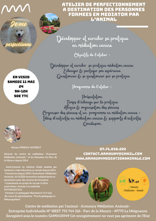 Je souhaite perfectionner ma pratique en médiation par l'animal